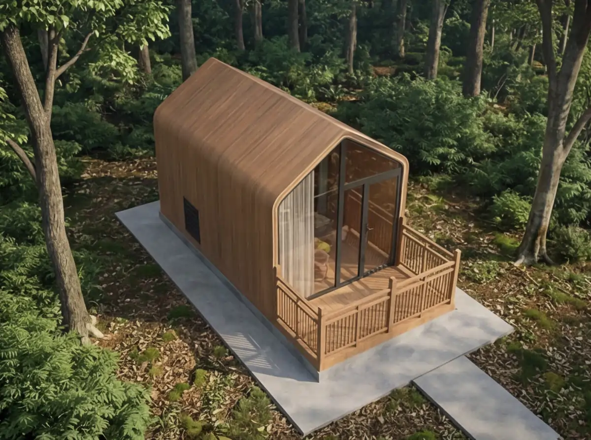 Każdy T-House to wielowarstwowy system precyzyjnie połączonych materiałów, który gwarantuje trwałość, izolację i komfort. Konstrukcja ze stali ocynkowanej stanowi szkielet o wysokiej wytrzymałości. Od zewnątrz chroni go 3-milimetrowa płyta aluminiowa, a od wewnątrz – europejska deska sosnowa oraz płyty gipsowo-kartonowe. Przestrzeń międzywarstwową wypełnia izolacja poliuretanowa, zapewniająca doskonałą termoizolację i ciszę. Duże szyby zespolone dwuwarstwowe (6+24A+6) oraz aluminiowe okna wpuszczają światło, nie tracąc przy tym właściwości izolacyjnych. Całość dopełnia zintegrowany sufit oraz hydrofobowa powłoka zabezpieczająca przed wilgocią. To konstrukcja, w której każdy detal ma znaczenie.