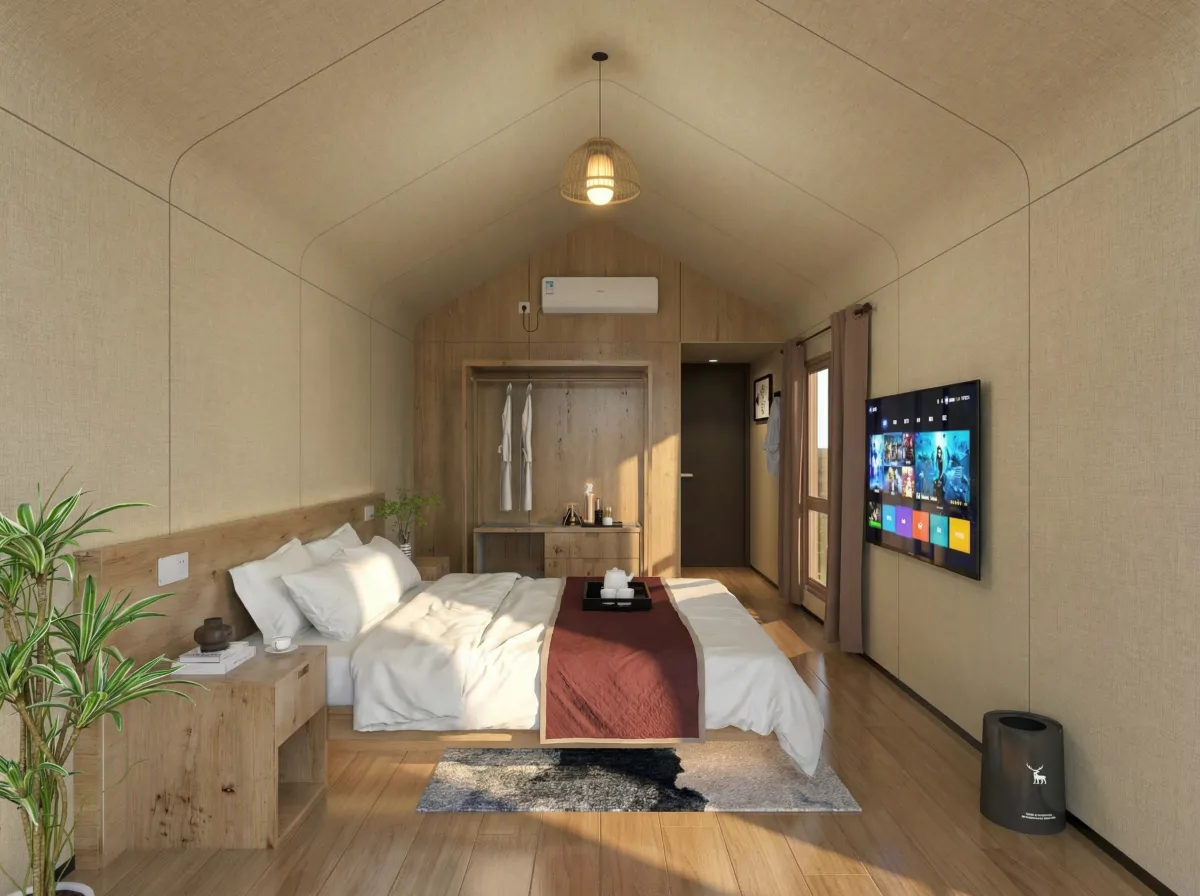 Tak. W standardzie otrzymujesz w pełni umeblowany i wyposażony dom: łóżko, sofę, kuchnię, łazienkę, klimatyzację, oświetlenie i tekstylia.